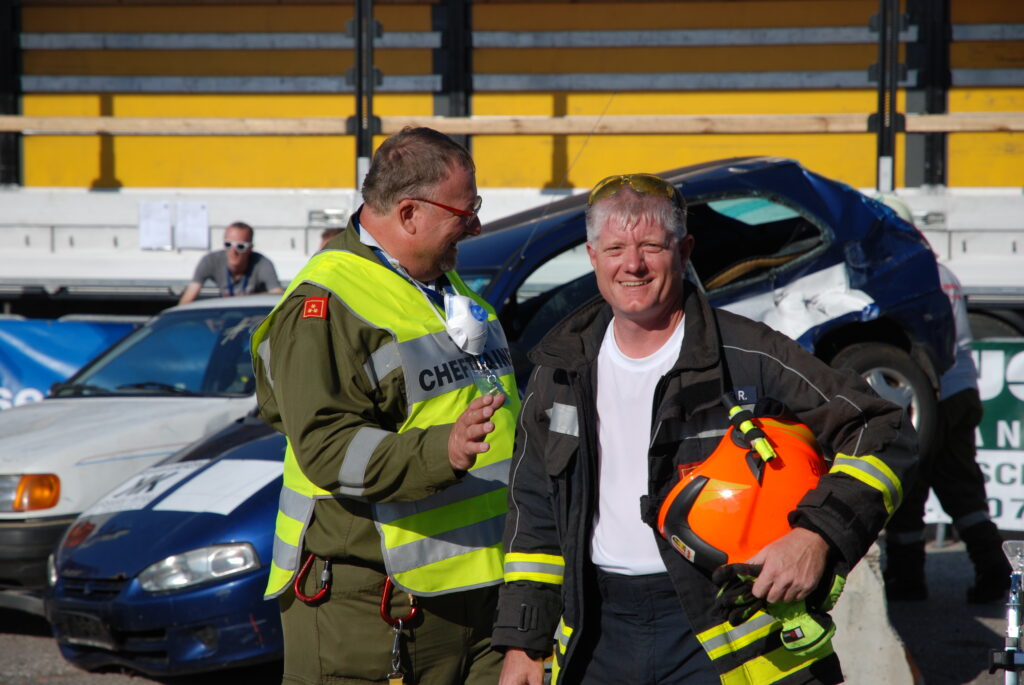 Zu Beginn besuchten wir viele Veranstaltungen zu diesem Thema, vor allem im Ausland. Ich kann mich noch gut an die WRC in Frankfurt oder London erinnern. Diese Besuche prägten und reiften soweit, dass wir in Meggenhofen auch eine eigene TRT-Gruppe gründeten. 2010 nahmen wir dann erstmals an einer Challenge teil. Bei sehr frostigen Temperaturen, es war Anfang Oktober in Haag am Hausruck, stellten wir uns mit damals geliehener Einsatzbekleidung den Bewertern. Ja, damals kann man sagen, waren es wirklich noch Bewerter. Sie waren International. Kamen aus Österreich, Deutschland, Luxemburg und England. Auch sie hatten diese Leidenschaft und konnten diese gut auf die Mannschaften übertragen.
